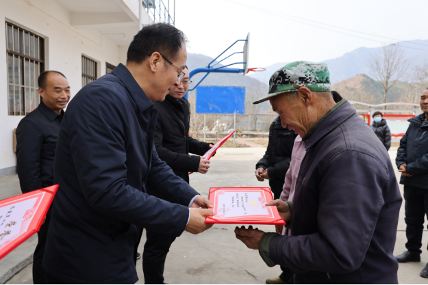 “……让我们对获得“最美家庭”“诚信之家”“好党员”“好媳妇”“好青年”“致富带头人”等23位模范群众表示热烈祝贺!”调研结束后,朱凌云参加了东西坪村2022年度乡风文明表彰活动,给模范群众颁奖,与模范典型、党员、群众代表畅谈心得、交流收获,并为困难群众、老党员送去了米面油等生活物资。