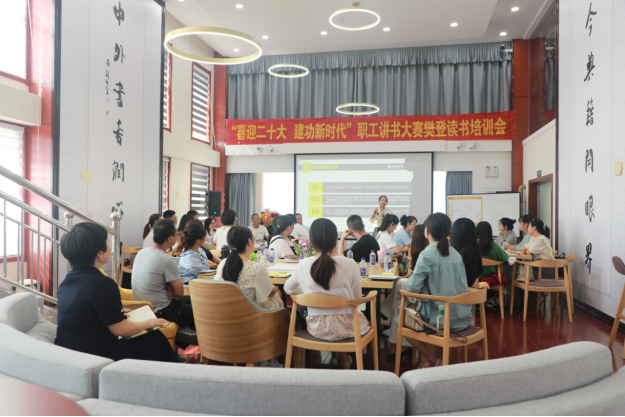 8月12日,ty8天游平台登录集团工会在金城大厦职工书屋举办“喜迎二十大 建功新时代”职工讲述大赛樊登读书培训会,为来自各单位的30余名学员读书讲书提供专业培训和指导,使大家学会如何讲好一本书,为后期举办的职工讲书大赛做好充分准备。